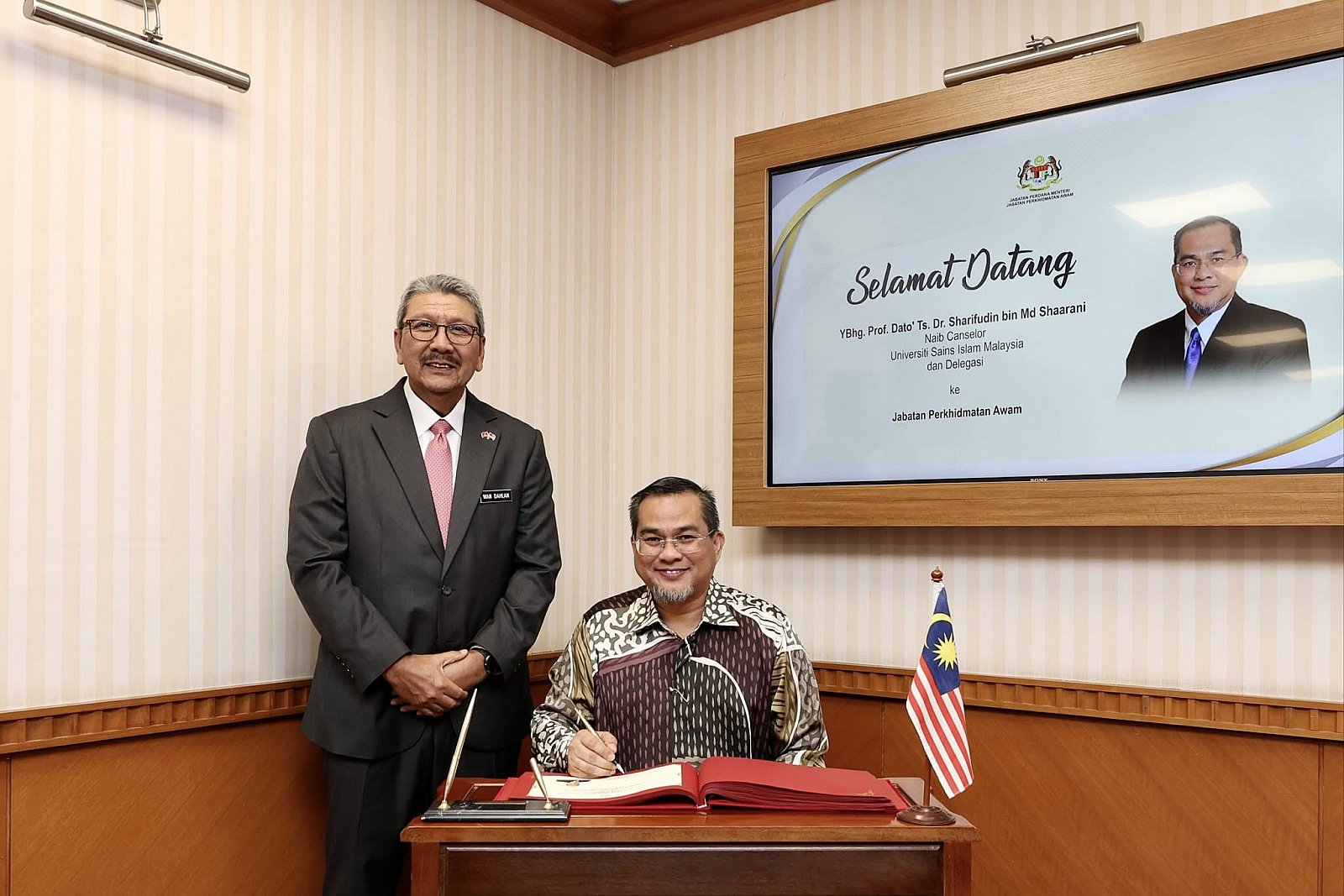 KUNJUNGAN HORMAT DARIPADA YBHG. PROF. DATO' TS. DR. SHARIFUDIN BIN MD SHAARANI, NAIB CANSELOR UNIVERSITI SAINS ISLAM MALAYSIA BERSAMA DELEGASI USIM KEPADA YBHG. TAN SRI WAN AHMAD DAHLAN BIN HAJI ABDUL
