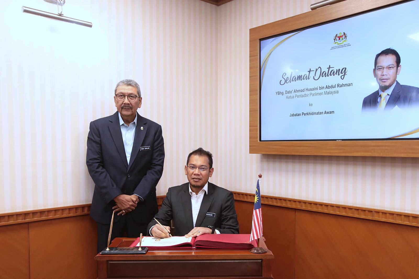KUNJUNGAN HORMAT DARIPADA YBHG. DATO_ AHMAD HUSAINI BIN ABDUL RAHMAN, KETUA PENTADBIR PARLIMEN MALAYSIA KEPADA YBHG. TAN SRI WAN AHMAD DAHLAN BIN HAJI ABDUL AZIZ, KPPA