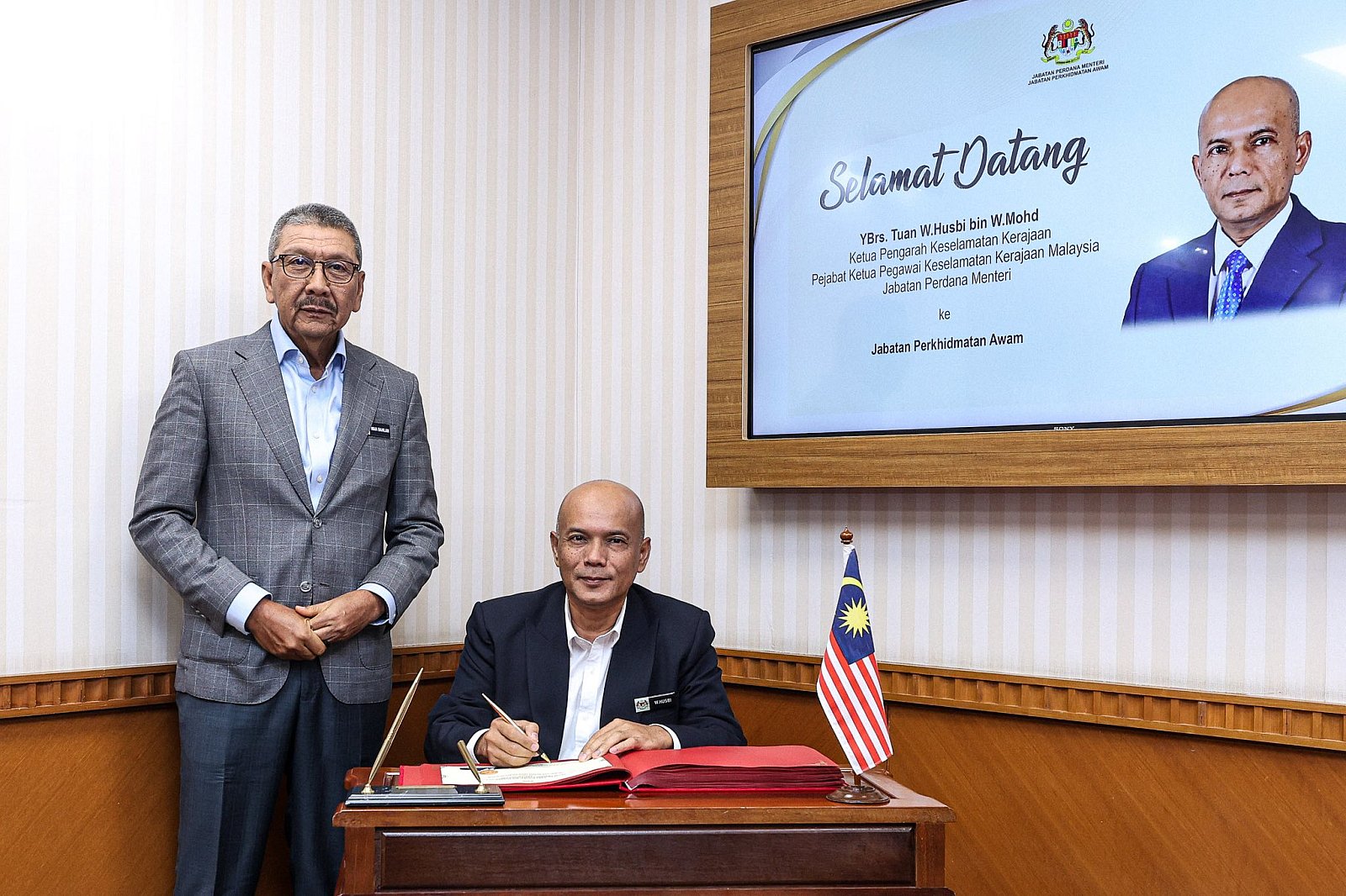 KUNJUNGAN HORMAT DARIPADA YBRS. TUAN W.HUSBI BIN W.MOHD, KP KESELAMATAN KERAJAAN, CGSO, JPM KEPADA YBHG. TAN SRI WAN AHMAD DAHLAN BIN HAJI ABDUL AZIZ, KPPA